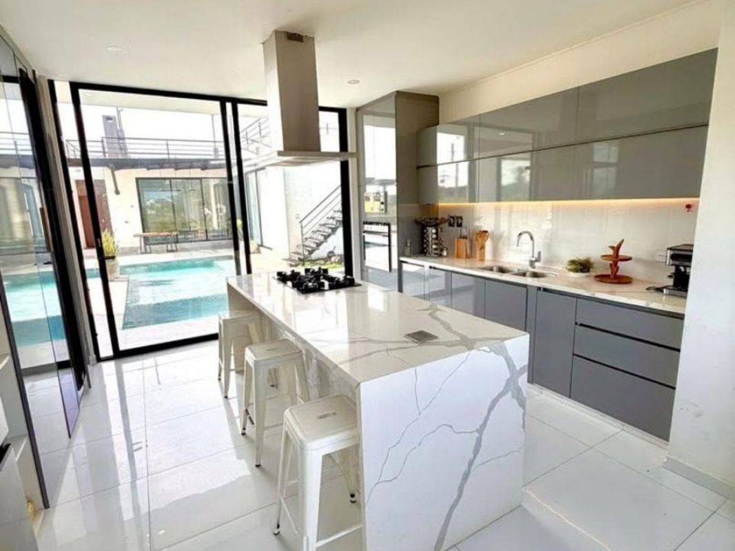 * Cocina con isla de mármol